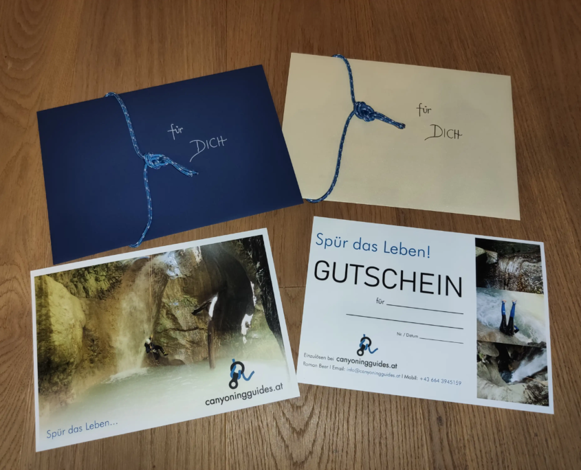 Seit dem 08.09.2018 bin ich zertifizierter Canyoning-Guide. Mein nächstes Ziel ist die Weiterbildung zum Canyoning-Ausbilder der Bergrettung Vorarlberg.